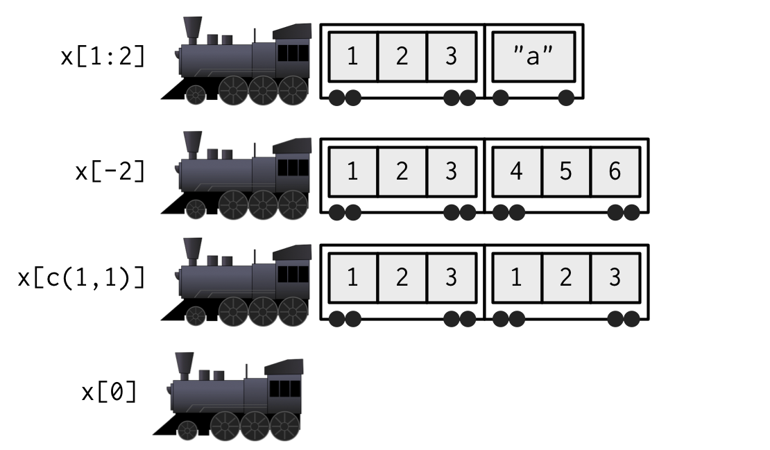 [、[[和$。 - 提取不同类型的对象,提取函数有不同的表现。