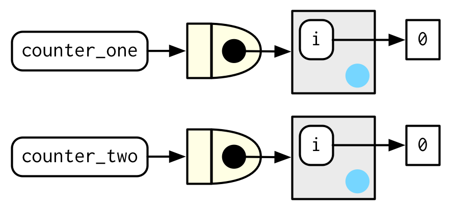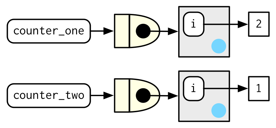 counter_two <- new_counter()counter_one()和counter_two()创建时,i的初始值是0。