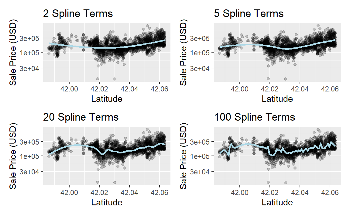 #> • Natural splines on: Latitude用户需要确定“社区”和“纬度”是否都应该包含在模型中,因为它们以不同的方式代表着相同的基础数据。